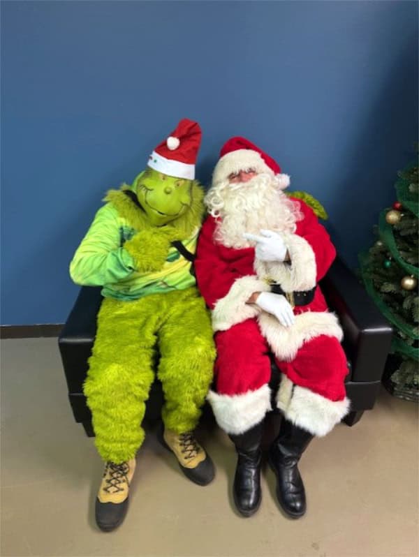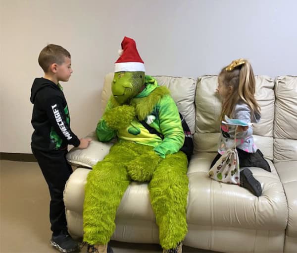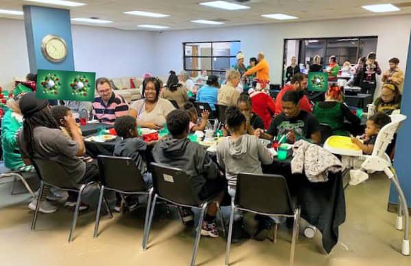 River of Refuge families and staff gathered for a holiday meal the evening of Dec. 15. Special guests provided a little sugar (Santa) and spice (Grinch).